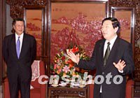 ![]() 中國國務(wù)院總理朱镕基二十六日在北京中南海會見前來述職的澳門特別行政區(qū)行政長官何厚鏵。中新社記者 毛建軍 攝