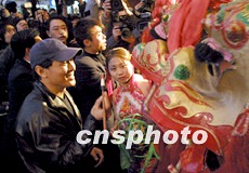 圖:李連杰在北京宣傳新作為舞獅點睛 2002年01月23日 20:25 ![]() 名揚海外的“功夫皇帝”李連杰二十三日在北京新東安商場影視城為其新作《宇宙追緝令》做宣傳,一隊舞獅者在商場門前迎接闊別家鄉多年的李連杰,李連杰高興地為獅子點睛。中新社記者 李剛 攝 |