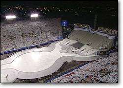 圖文:第十九屆冬奧會(huì)如期在美國(guó)鹽湖城開(kāi)幕 2002年02月09日 10:29 ![]() 冬奧會(huì)開(kāi)幕式俯瞰 中新網(wǎng)北京2月9日消息:盡管剛剛經(jīng)過(guò)一場(chǎng)大雪,氣候惡劣,但第19屆冬奧會(huì)還是如期于當(dāng)?shù)貢r(shí)間周五晚間9時(shí)(北京時(shí)間今天上午10時(shí))在美國(guó)猶他州鹽湖城如期舉行。 美國(guó)總統(tǒng)布什和國(guó)際奧委會(huì)主席羅格出席在鹽湖城萊斯-埃克爾斯奧林匹克運(yùn)動(dòng)場(chǎng)舉行的開(kāi)幕式。布什莊嚴(yán)宣布說(shuō):“我宣布鹽湖城運(yùn)動(dòng)會(huì)召開(kāi)。我宣布冬奧會(huì)開(kāi)幕”。 剛剛在紐約世貿(mào)廢墟中挖掘出的殘損美國(guó)國(guó)旗在萊斯-埃克爾斯奧林匹克運(yùn)動(dòng)場(chǎng)冉冉升起。人們的歡聲笑聲連成一片。