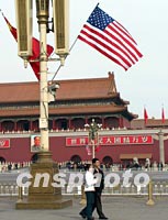 圖:中美國旗招展天安門引市民關注 2002年02月22日 18:36 ![]() 美國總統(tǒng)布什訪華第二日,天安門廣場中美國旗在陽光下招展飄揚,金水橋邊車水馬龍,一些游人以中美國旗為背景照相留影。許多市民對布什昨天關于“中美關系搞好了對世界都有益”的表述十分贊賞。中新社記者 王麗南 攝