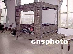 ![]() 古代夫君與妻妾同睡一張的“三人用大木床”。中新社圖 張瑛 攝