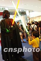 圖:星球大戰的黑武士吸引小童注目 2002年04月08日 15:37 ![]() 在香港太古城舉行的“樂高動感繽紛SHOW”上,星球大戰的黑武士人物造型,吸引小童注目。中新社圖 洪少葵 攝