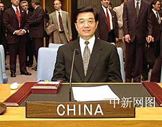 圖:胡錦濤在聯(lián)合國安理會(huì)做"五秒鐘代表" 2002年04月30日 08:44 ![]() 美國東部時(shí)間四月二十九日下午,中國國家副主席胡錦濤一行在首次對(duì)美國進(jìn)行正式訪問期間,來到紐約聯(lián)合國總部參觀。在聯(lián)合國安理會(huì)會(huì)議廳中,胡錦濤坐到常任理事國中國的代表席上留影,并笑稱:“讓我當(dāng)個(gè)五秒鐘的代表吧。”中新社記者 陳建 攝