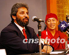 圖文:臺佛界捐款百萬港幣重修阿富汗巴米揚大佛 2002年05月17日 16:34 ![]() 5月16日臺灣宗教界著名心道法師聯(lián)同聯(lián)合國千年世界和平峰會秘書長巴瓦金(Bawa Jain)(左)遠道來港,在萬豪酒店召開記者會,宣布由臺灣世界宗教博物館捐贈一百萬港幣給阿富汗,作為重建“巴米揚”大佛像經(jīng)費。中新社圖 洪少葵 攝