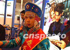 來自內蒙古的盛裝公關小姐,在北京五月各種科技展覽會上出現,推介大草原環保產品。賈國榮 攝
