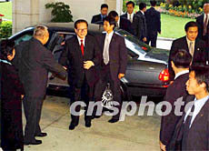 圖:董建華在禮賓府迎候江澤民主席 2002年06月30日 22:04 ![]() 六月三十日,香港特首董建華在香港特區政府禮賓府歡迎國家主席江澤民,圖為董建華與夫人在禮賓府迎候江澤民主席。潘索菲 攝