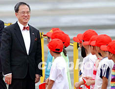 圖:政務(wù)司長曾蔭權(quán)與前來歡送的小朋友寒暄 2002年07月01日 18:15 ![]() 香港政務(wù)司司長曾蔭權(quán),7月1日在香港國際機(jī)場為國家主席江澤民送行前,與前來歡送的小朋友寒暄。中新社圖 洪少葵 攝