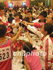 參加中國第三屆特奧會的運動員九日晚舉行酒會,預祝本屆運動會圓滿成功。作者:宋吉河