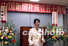 留日華僑聯合總會會長陳(火旁加昆)旺、日本僑報總編輯段躍中分別代表日本華僑華人和在日華文媒體致詞,對中國新聞社成立五十周年表示祝賀,稱贊中國新聞社為海外華僑華人了解中國發揮了重要作用。