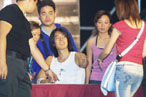 Vanness舉行完簽唱會之后,昨午已飛返臺灣。原本Vanness搭下午一點的飛機離開,但最后改搭三點班機。Fans不但逃學來守候偶像,有十名歌迷更搭的士由酒店追到機場。約兩點十分,帶帽一身牛仔裝束的吳建豪抵達機場,一下車半百名Fans即鋒擁而上,瘋狂尖叫,更紛紛將禮物遞給他,情況一片混亂,其中一名女歌迷追逐期間還甩掉了鞋子!不過她仍然不理光著腳丫子繼續死追!