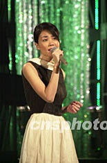 圖為香港著名歌手王菲在晚會(huì)上演唱《但愿人長久》。