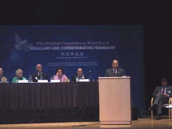 座談會(huì)上,美中關(guān)系全國委員會(huì)主席卡內(nèi)伯、中美老兵代表宋承志和懷特、陳納德將軍的夫人陳香梅分別回顧了“二戰(zhàn)”時(shí)期,中美兩國人民在反法西斯戰(zhàn)場上的合作歷史和結(jié)下的深厚友誼。他們都表示,中美兩國在歷史上是友好的,現(xiàn)在和未來仍然應(yīng)當(dāng)是友好的。