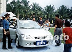 “海南首屆汽車展銷會”日前在海口現代花園舉辦。本屆參展車輛數十余款,參觀人數達十萬人次。現場銷售142輛轎車,創下海南省近年來黃金周售車的最高記錄。作者:莫成雄