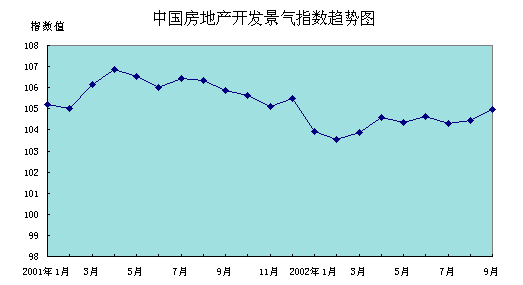 今年前9個月,國房景氣指數總體走勢比較平穩,波動幅度不大。“國房景氣指數”盡管仍然低于去年同期水平,但近兩個月以來,連續保持上揚態勢。