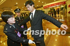圖為公安人員在代表駐地進行嚴格的安檢,以確保安全。