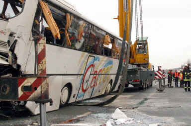 中新網(wǎng)11月7日電 一輛載有22名香港旅客的旅游巴士,在德國(guó)開(kāi)往意大利途中,在德國(guó)南部巴伐利亞州的A3高速公路上,被另一輛載有美國(guó)人的旅游巴士從后面碰撞,車身嚴(yán)重?fù)p毀。香港旅游團(tuán)中有11名旅客受傷,其中2人傷勢(shì)較重,幸無(wú)生命危險(xiǎn)。美國(guó)人則有12人受輕微割傷或撞傷。