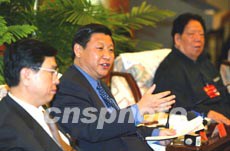 圖為十六大代表、浙江省代省長習近平在會上發言。