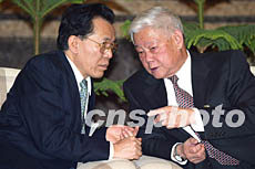 圖:葉選平與盧瑞華在中共十六大分組會上交談