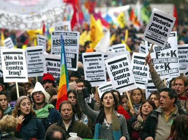 圖:意大利佛羅倫薩30萬人游行反對美對伊進行戰爭