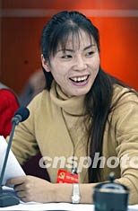 中國體壇素有“亞洲女飛人”稱號的李雪梅,身為中共十六大代表參加四川代表團分組會。作者:毛建軍