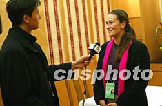 圖:采訪十六大的外國記者成中國記者采訪對象
