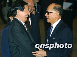全國政協副主席霍英東、香港特別行政區行政長官董建華、中央政府駐港聯絡辦主任高祀仁會見時在座。
