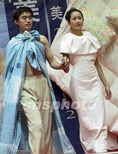 圖:穿著被子床單 模特表演“另類婚紗”