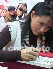 臺灣歌手伊能靜七日在北京圖書大廈為其新書《生死遺言》簽名售賣,吸引大批北京青年。作者:廖文靜