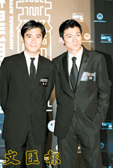 據(jù)港報(bào)報(bào)道,幾位主角劉德華﹑梁朝偉﹑陳冠希﹑黃秋生及余文樂等,都穿黑色服裝出席,而到場的唯一一位女演員蕭亞軒卻穿得十分鮮艷,形成強(qiáng)烈對比。眾演員先在時(shí)代廣場的露天廣場舉行祝酒儀式,為見偶像一面,現(xiàn)場早已圍滿了數(shù)百fans,而到場采訪的記者也近百人。當(dāng)劉德華與梁朝偉出場時(shí),fans不停尖叫,兩位男主角更互斗電力,偉仔單眼,華仔則瞇眼,不時(shí)做出放電的表情,令現(xiàn)場fans“喧嘩鬼叫”。