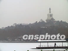 北京城中心的北海白塔十五日披上雪花銀裝,歲末的降雪更顯寒冬的肅穆。作者:賈國榮