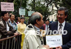 香港制造業總工會與飲食業總工會代表,十二月十八日在香港特區政府總部,向保安局常務秘書長湯顯明遞交支持《基本法》第二十三條立法的意見書。潘索菲 攝