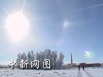 圖:中國酒泉衛(wèi)星發(fā)射中心上空日前出現(xiàn)日暈現(xiàn)象