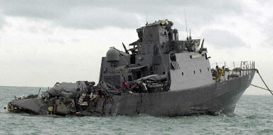 國防部說,意外發生時,4名受困女兵是在軍艦尾端的女兵臥艙內,這是受猛撞最嚴重的部分,當局直今仍未能確定她們受困的位置。