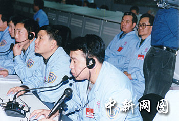 圖:科技人員精控“神舟”四號飛船運行