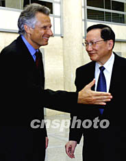 中新網1月9日電 中國外交部長唐家璇今天與來訪的法國外長德維爾潘舉行會談。兩國外長對雙邊關系予以積極評價,唐家璇指出朝核問題與伊問題性質不一樣,解決朝核問題的最佳方式是美朝直接對話。