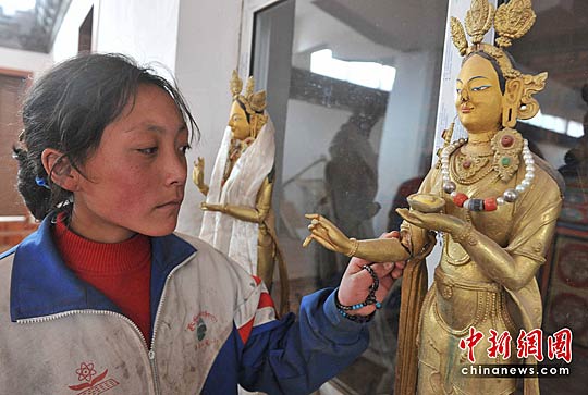 青海玉樹地震:震中點寺院的文成公主塑像局部損壞
