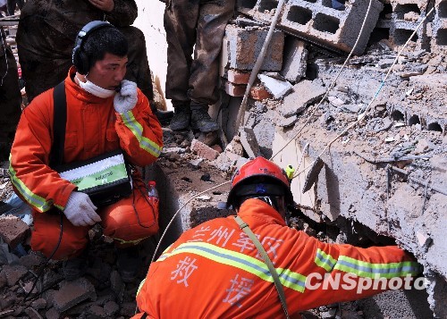 青海玉樹地震:唐山農民志愿者幫助受災民眾搜尋財物