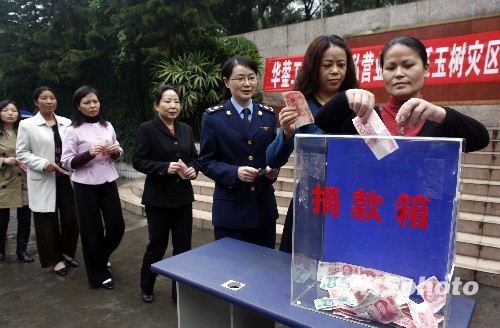 四川華鎣:市民踴躍為玉樹災區捐款獻愛心