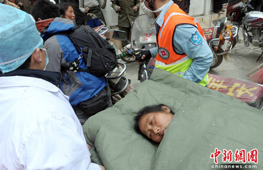 青海玉樹震后第4天一名中年婦女獲救