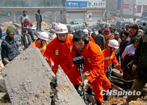 青海玉樹地震多支搜救隊(duì)不停搜救