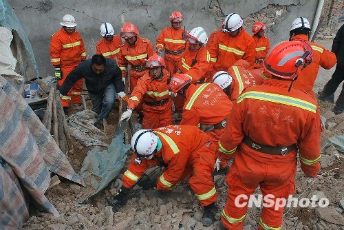 地震救援隊(duì)在玉樹結(jié)古鎮(zhèn)救出三名罹難者