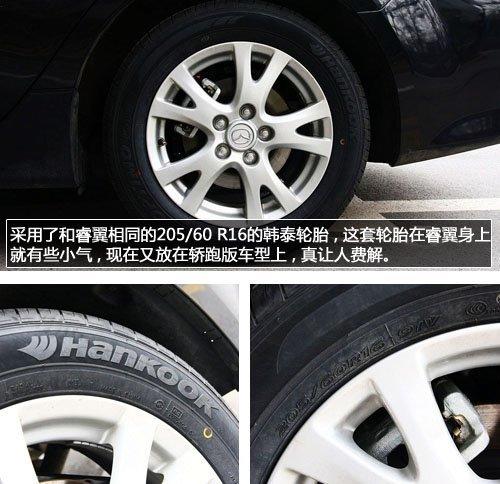 睿翼轎跑車的尾部也與普通版不同,順滑圓潤(rùn)的C柱設(shè)計(jì)比普通版車型看上去更加動(dòng)感,不過(guò)這樣也會(huì)損失一些后排乘客的頭部空間,后備箱采用了掀背式設(shè)計(jì),連同后車窗一起開(kāi)啟,開(kāi)口很大,讓消費(fèi)者可以更加從容的取放大件物品,而后備箱開(kāi)啟按鈕的設(shè)計(jì)則與睿翼沒(méi)有區(qū)別。最大的遺憾就是我們?cè)谶@款車型上看到的205/60 R16的韓泰輪胎,在睿翼身上就顯得有些小,搭配到睿翼轎跑上還沒(méi)有任何改進(jìn)就有點(diǎn)說(shuō)不過(guò)去了,這樣節(jié)約成本的方式實(shí)在讓人不解。