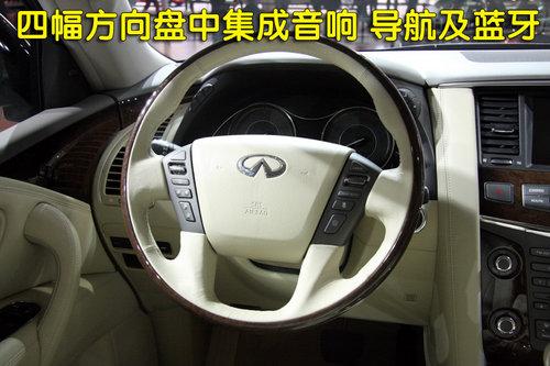 中控臺的做工與用料無需我們多言,各項功能的分布也很合理,易于前排乘客操作,在功能方面QX56將它演繹的非常極致,中央的大屏幕帶有人機交互系統,可顯示導航、空調及車輛信息等,下方還配備了雙區自動恒溫空調及電加熱開關功能。而這一切也詮釋了新QX56的豪華。