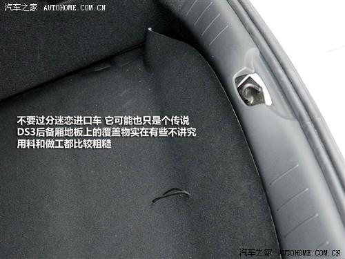 本次實拍的DS3為進口版本,但是后備廂地板的覆蓋物是在有些不講究,從用料到做工都比較簡陋,只是簡單的遮蓋,難道這是個例?