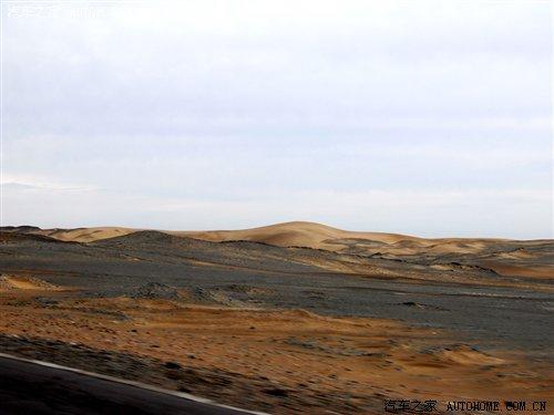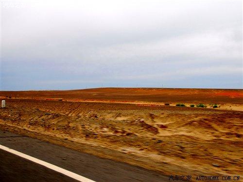 1個小時的車程后,公路兩旁不再是那土房子和綠綠的田地了,取而代之的是戈壁灘。此時公路兩旁也沒有了太多的景物,遠處看到的是清晰的地平線,什么叫做天地結(jié)合或許此時你會深有體會。