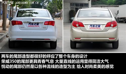 兩車的車尾都很好的延續了車身設計的整體性,350車尾的線條依然簡潔利索,甚至帶有一些轎跑的感覺,反觀悅動的車尾也延續了自己流暢柔美的特點,尾燈的形狀都和頭燈十分相似。從圖片來看兩車后備廂開口的高度也相差無幾。