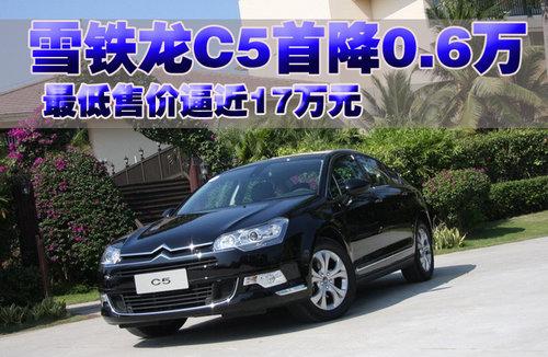 據北京東風雪鐵龍4S店銷售人員介紹,目前C5全系首次優惠6000元慶祝C5上市半年,最低售價僅為17.09萬。C5現正在全國范圍內舉辦降價促銷活動,不僅有現金5000的直降優惠,更可無償試用新車三天,并享受低至1%的低負擔貸款和二手車置換等重量級優惠組合,旨在讓更多消費者有機會享受C5的卓越品質和五星安全。目前 C5 除3.0 AT旗艦型和C5 2.0 MT手動舒適型外均有顏色較全的現車供應,C5 2.0 AT自動舒適型主要有黑色現車可選,消費者訂車交訂金1萬元等待20天便可提車。由于各店的訂單不同,各店銷售的車型和顏色有所不同。行情信息多變,請以當日行情為準。