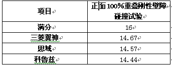 在這一環節的測試上,科魯茲和三菱翼神表現不錯,思域在胸部保護方面略有失分。