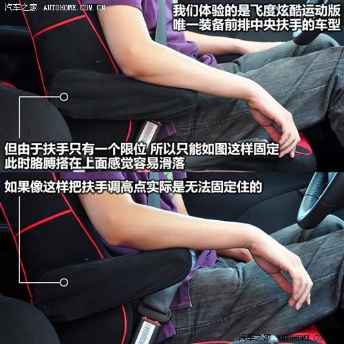 另外兩項比較明顯的配置是自動空調和前排中央扶手。前者肯定可以為乘客提供一定的便利性,但是相信很多車主也和我一樣反感自動空調經常自作主張的將風量調到最大的行為,而一些用戶選擇自動空調的原因也僅僅它看上去要高檔一些。而中央扶手的實用性更低,飛度炫酷版的中央扶手較窄而且高度不可調,可提供的舒適性比較有限。