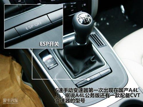 此次拍攝的這款A(yù)4L政府公務(wù)版為手動(dòng)車型,但據(jù)商家透露A4L政府公務(wù)版還將推出CVT車型。比較令人興奮的是,這臺手動(dòng)變速器為6前速,使其成為市面上奇貨可居的6速手動(dòng)車型,而駕駛手動(dòng)奧迪A4L相信對廣大喜愛操控的車迷也是一個(gè)不小的誘惑。